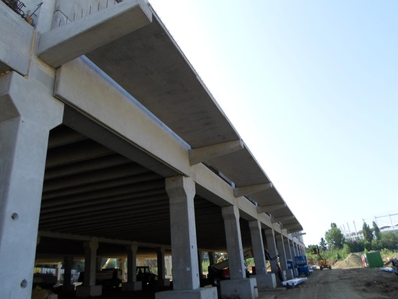 Structure: The building structural system consist of reinforced concrete (precast) framed building with trapezoidal profile roof system and two adjoining steel canopies - main entrance canopy and warehouse canopy.